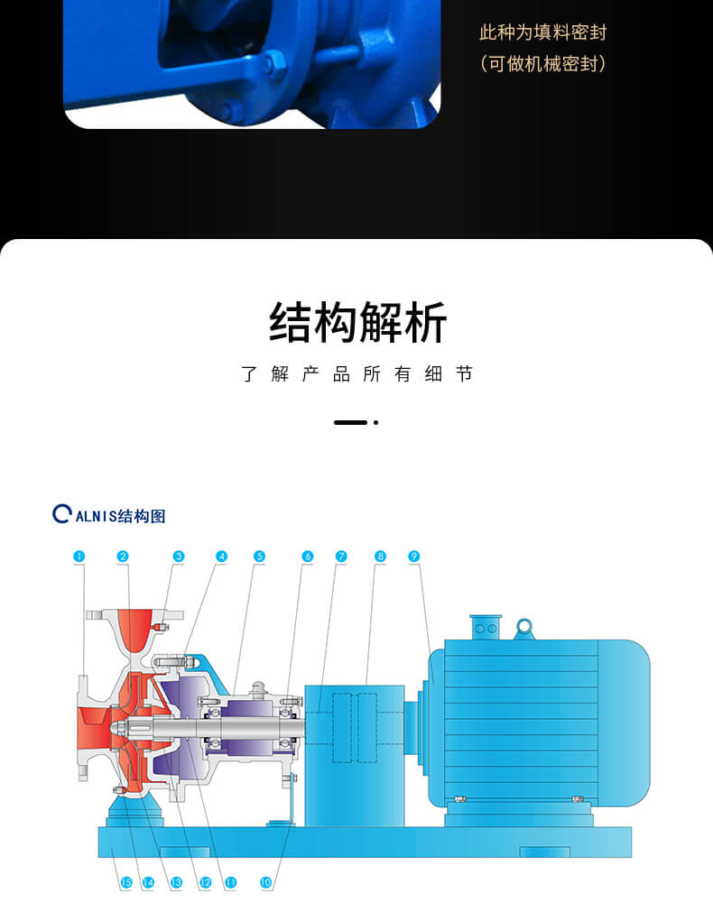 ALNIS型離心泵供輸送清水或物理化學(xué)性質(zhì)類似于水的其它液體之用,溫度不高于80℃該系列單級(jí)離心泵是根據(jù)國(guó)家標(biāo)準(zhǔn)ISO2858進(jìn)行設(shè)計(jì)的并按國(guó)家標(biāo)準(zhǔn)SIO199/ DIS制造的,其技術(shù)指標(biāo)與老產(chǎn)品相比,效率平均提高5%左右,汽蝕余量降低了2%左右,是一種性能穩(wěn)定,零部件尺寸實(shí)現(xiàn)標(biāo)準(zhǔn)化的節(jié)能高效產(chǎn)品,是國(guó)家機(jī)械工業(yè)部確定取化老式耐腐蝕泵及替代進(jìn)口的節(jié)能更新?lián)Q代的產(chǎn)品。