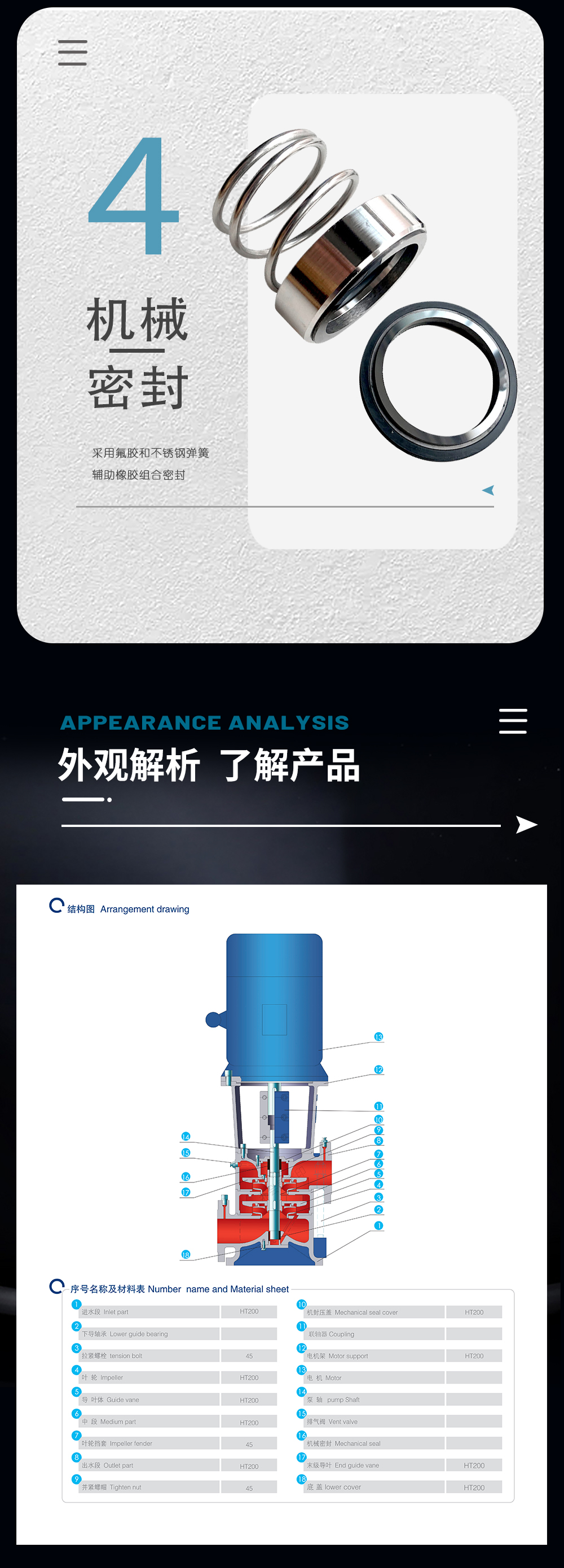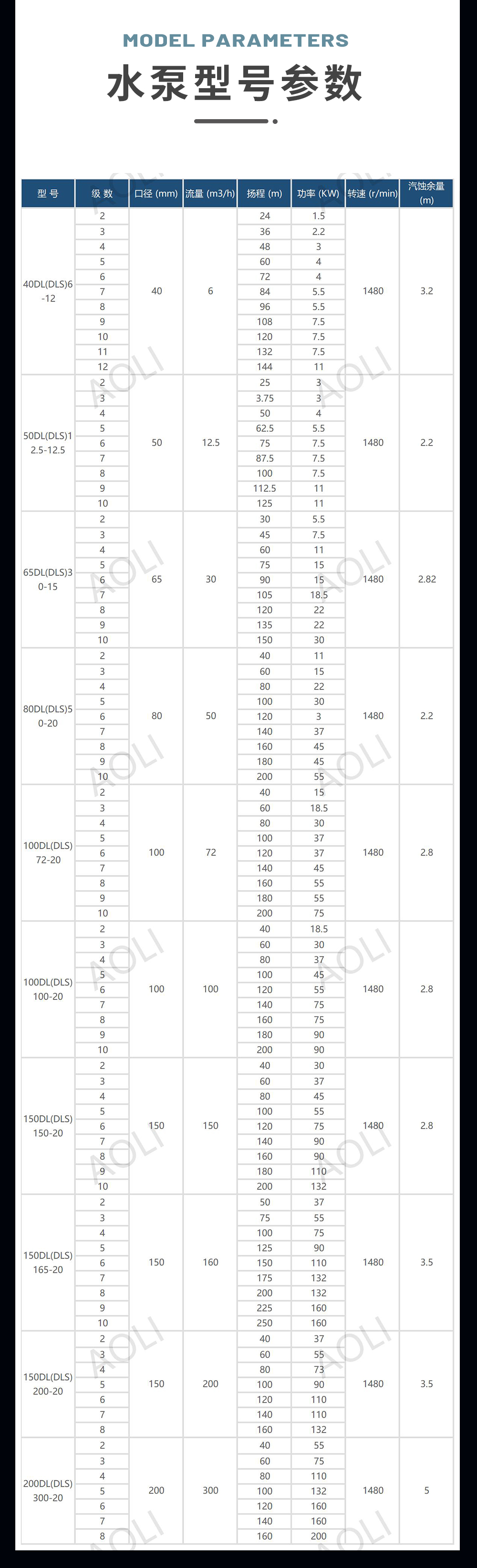DL立式多級離心泵是采用國家推薦使用的高效節(jié)能產(chǎn)品IS型泵的水力模型,為立式多級多節(jié)段式結(jié)構(gòu)。螺桿把進(jìn)水段、中段、出水段夾緊聯(lián)成一體。水泵每一級 裝一個葉輪、一個導(dǎo)水葉。軸向力采用水力平衡法解決,殘余軸向力由球軸軸承承受,用油脂潤滑。軸封采用軟填料或機(jī)械密封。產(chǎn)品執(zhí)行JB/T2727-93標(biāo)準(zhǔn),主要供吸送稀釋的、清潔的、不腐蝕的、不爆炸的清水及物理化學(xué)性質(zhì)類似水的不含固體顆?;蚶w維的液體。