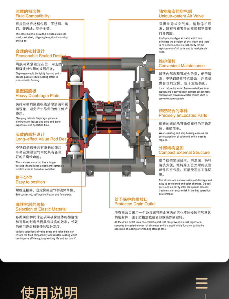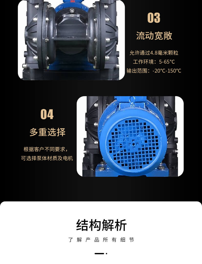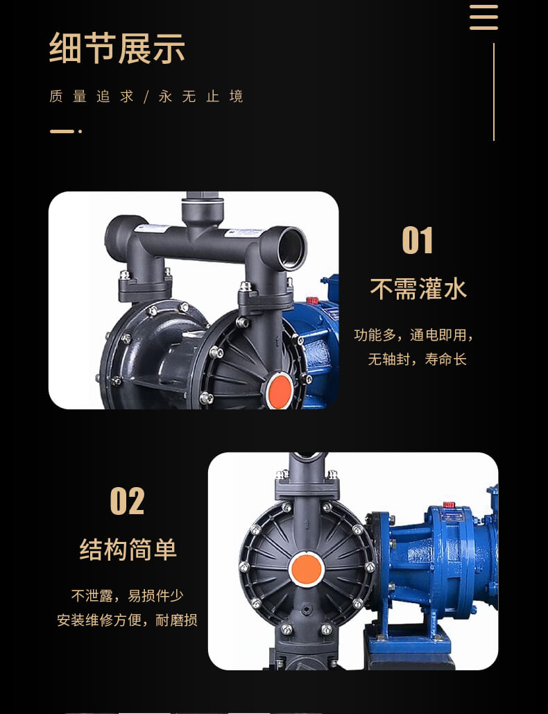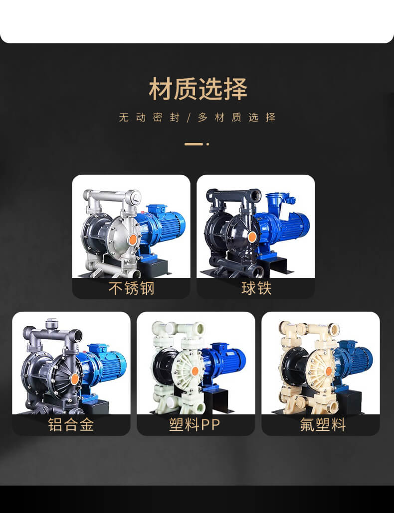 DBY 型電動隔膜泵是一種新型的泵類,近年來,在隔膜材質(zhì)上取得了突破性的進(jìn)展。本泵應(yīng)用于石化、陶瓷、冶金等行業(yè),這種泵的主要特點(diǎn)是不需灌引水。直徑在10毫米以下的顆粒、泥漿等均可以毫不費(fèi)力地通過。由于隔膜將被輸送介質(zhì)和傳動機(jī)械件分開,所以介質(zhì)絕對不會向外泄漏,且泵本身無軸封,使用壽命大大延 長。根據(jù)不同介質(zhì),隔膜分為氯醇橡膠、氟橡膠、丁晴橡膠等,完全可以滿足不同用戶的要求。