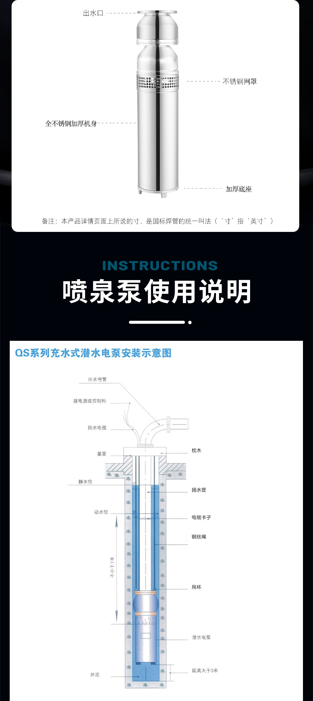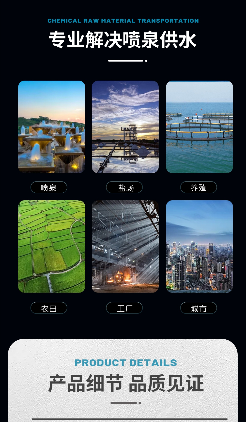 QSP型噴泉專用泵是一種新型的噴泉專用水泵,主要用于噴泉供水,水產(chǎn)等場(chǎng)所。噴泉泵廣泛用于低揚(yáng)程的城市、農(nóng)田排灌、噴灌;工業(yè)及民用的供、排水系統(tǒng),丘陵、山區(qū)引水、以及低洼地排除積水。