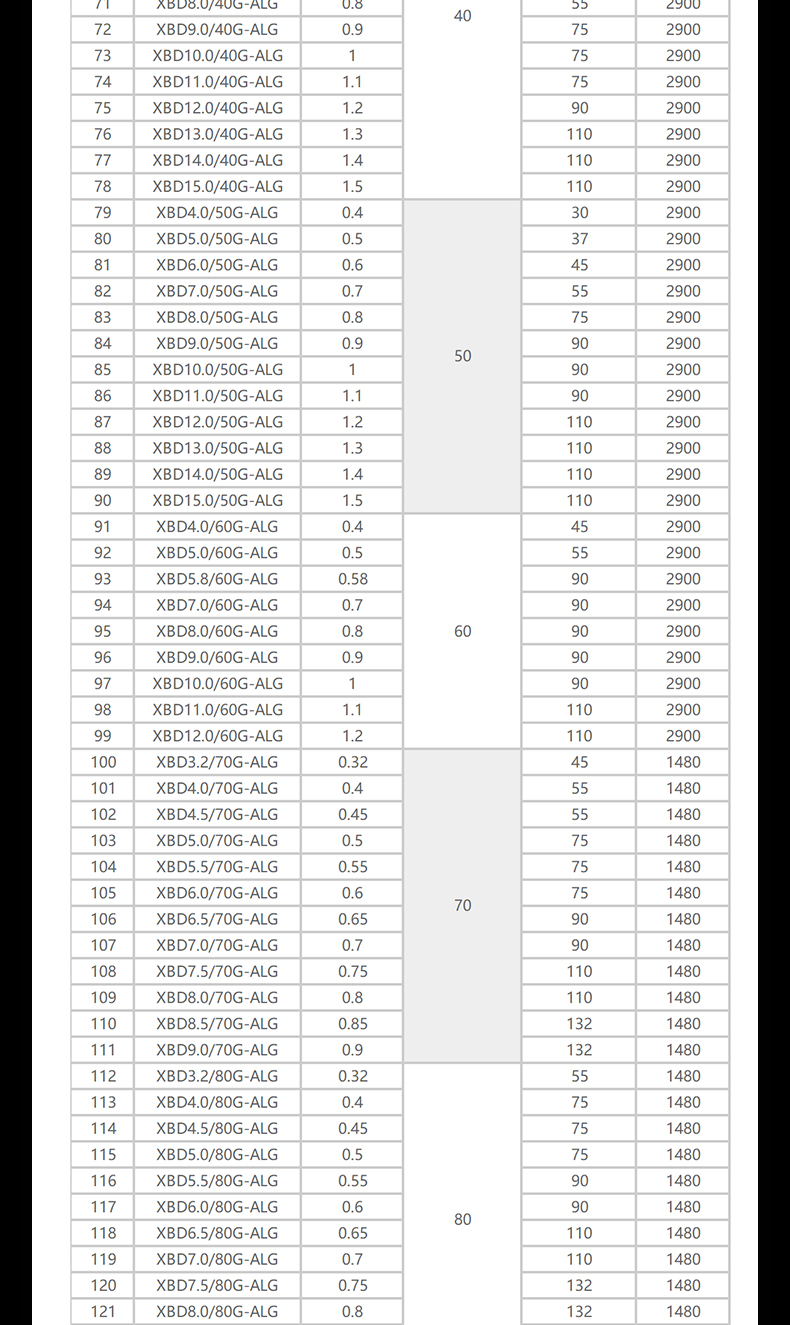 XBD-ALG立式單級(jí)消防泵是一種消防用具,供輸送不含固體顆粒的清水及物理化學(xué)性質(zhì)類似于水的液體之用,主要用于消防系統(tǒng)管道增壓送水和各種場(chǎng)合的消防給水(消防栓滅火系統(tǒng)、自動(dòng)噴淋滅火系統(tǒng)和水噴霧滅火系統(tǒng)等),也可適用于工業(yè)和城市給排水,高層建筑增壓送水、遠(yuǎn)距離送水、采暖、浴室、鍋爐冷暖水循環(huán)、增壓空調(diào)制冷系統(tǒng)送水及設(shè)備配套等場(chǎng)合。